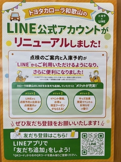 トヨタカローラ和歌山 LINE公式アカウントのご案内です!