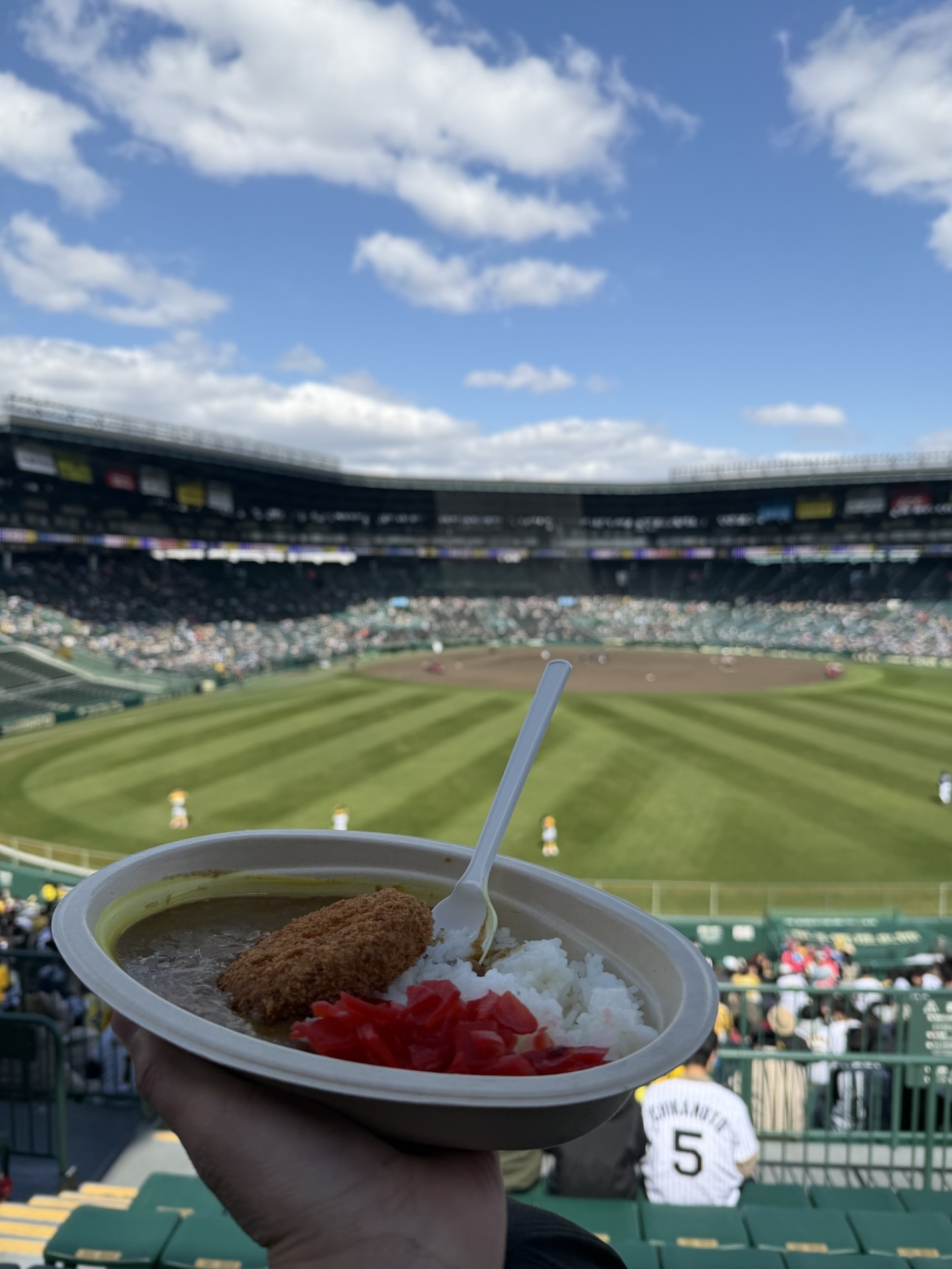 試合の先制は阪神タイガースでしたが、先制点がホームランだったので会場は非常に盛り上がっていました。