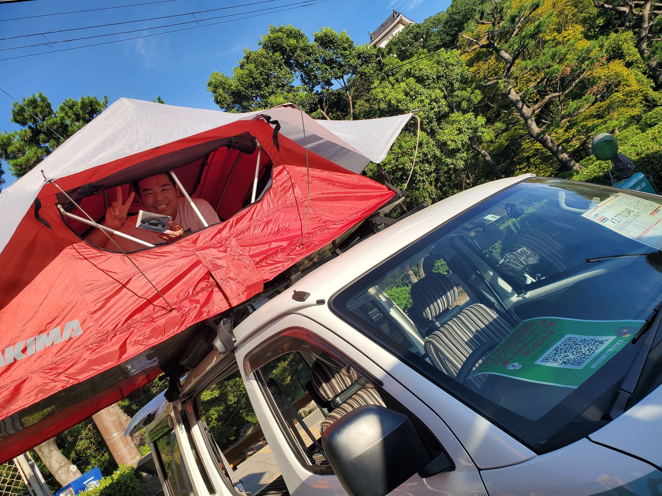 車の上にオプションで付けられるテントも箕島高校の柔道部さん達に楽しんで貰えました。